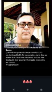 O desaparecimento de um taxista mobilizou moradores e autoridades no nordeste do Pará nos últimos dias e terminou de forma trágica, nesta segunda-feira (9). Após buscas e investigações, o corpo de José Natalino dos Santos foi encontrado no município de Quatipuru.